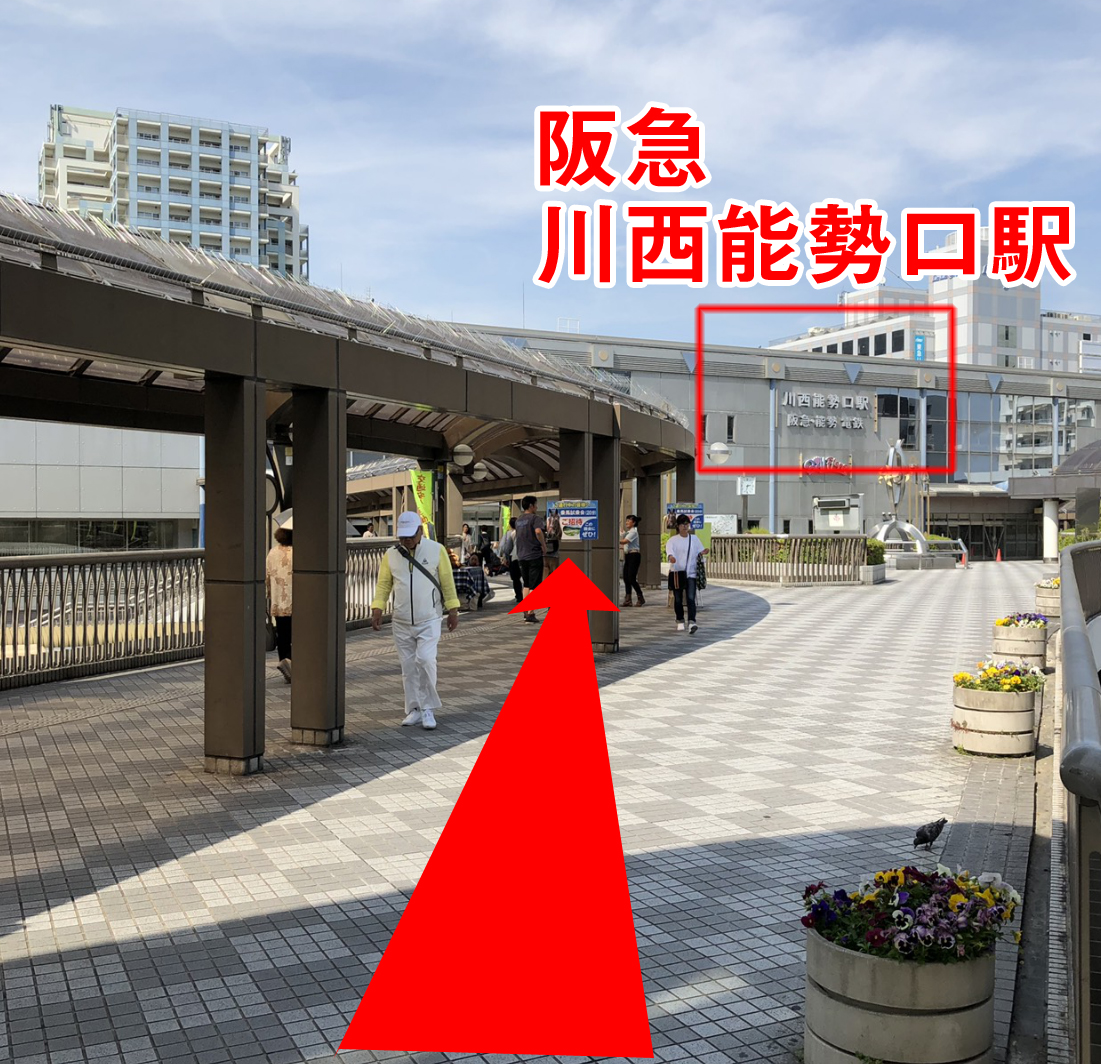 ⑦直進していくと目印に「阪急川西能勢駅」が見えてきます。